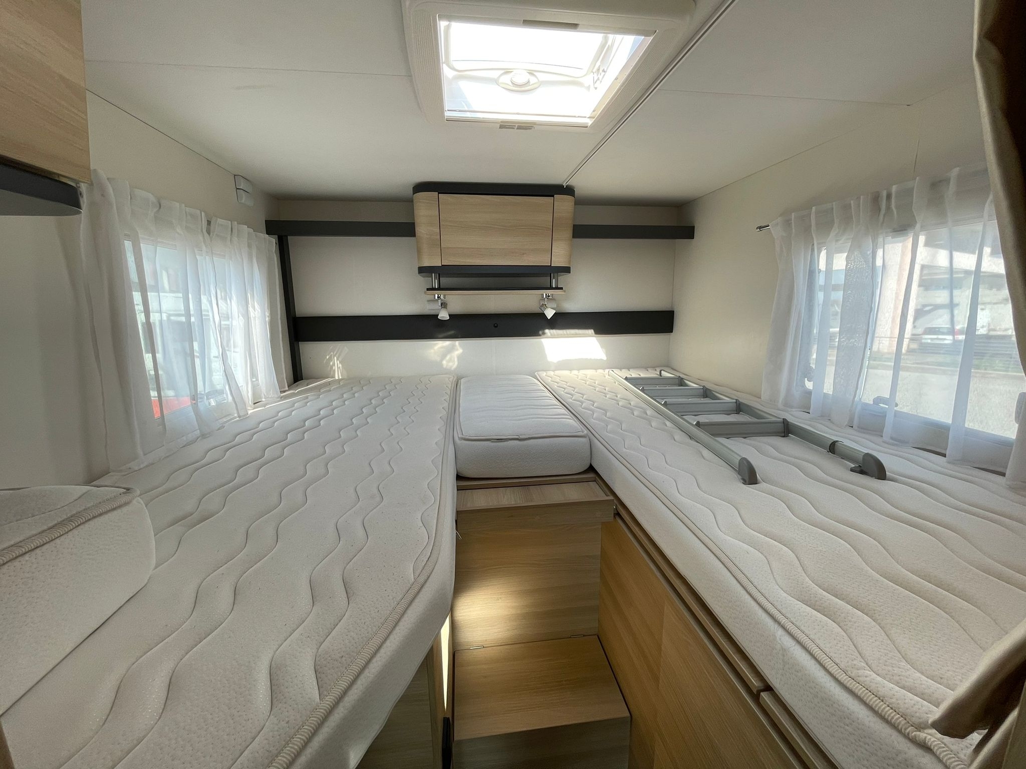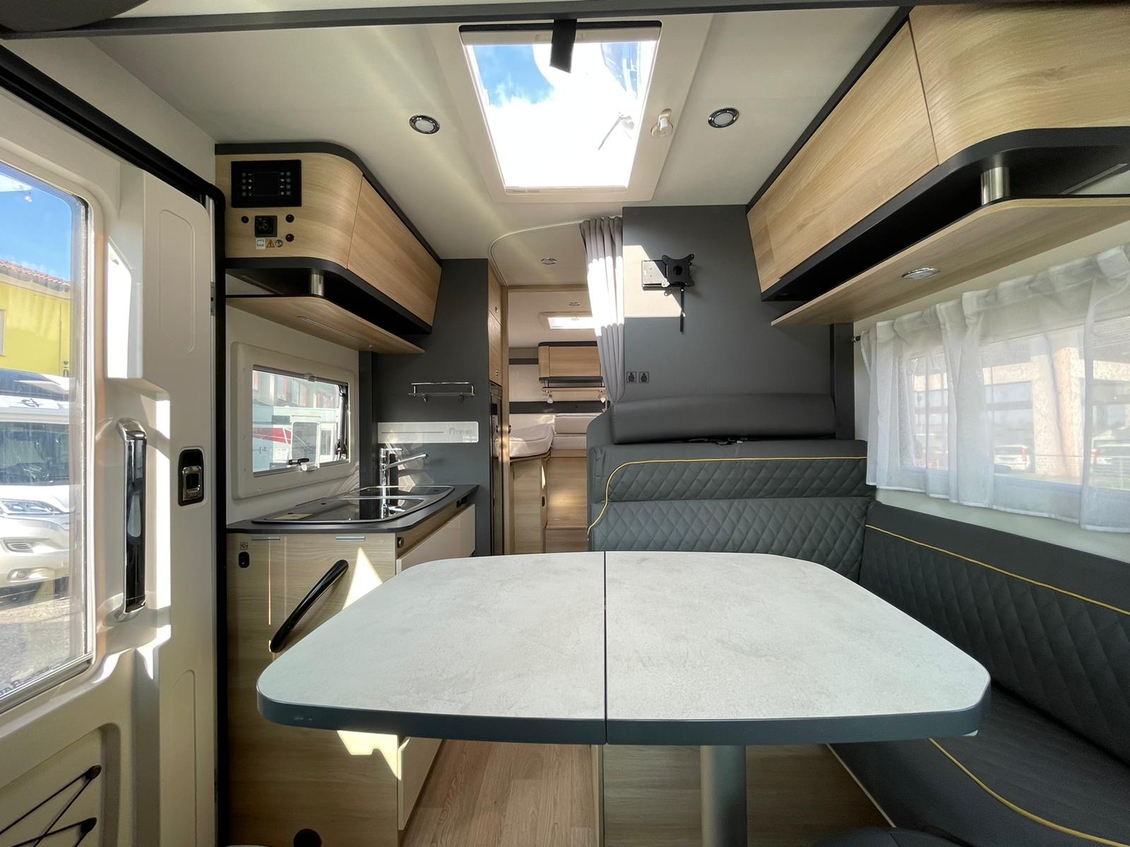Dotazione: Cerchi in lega 16’, chiusura centralizzata, Clima cabina, Cruise control, Comandi al volante, Radio + impianto stereo, retrocamera, Veranda, Luce esterna, Portabici 4 posti, Antifurto volumetrico perimetrale, Zanzariera porta cellula, maxi oblò panoramico, sedili cabina girevoli, luci full led interne, gradino elettrico, tappezzeria in ecopelle VEICOLO EX NOLEGGIO immatricolato 09/2024
