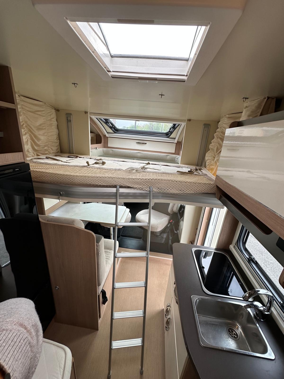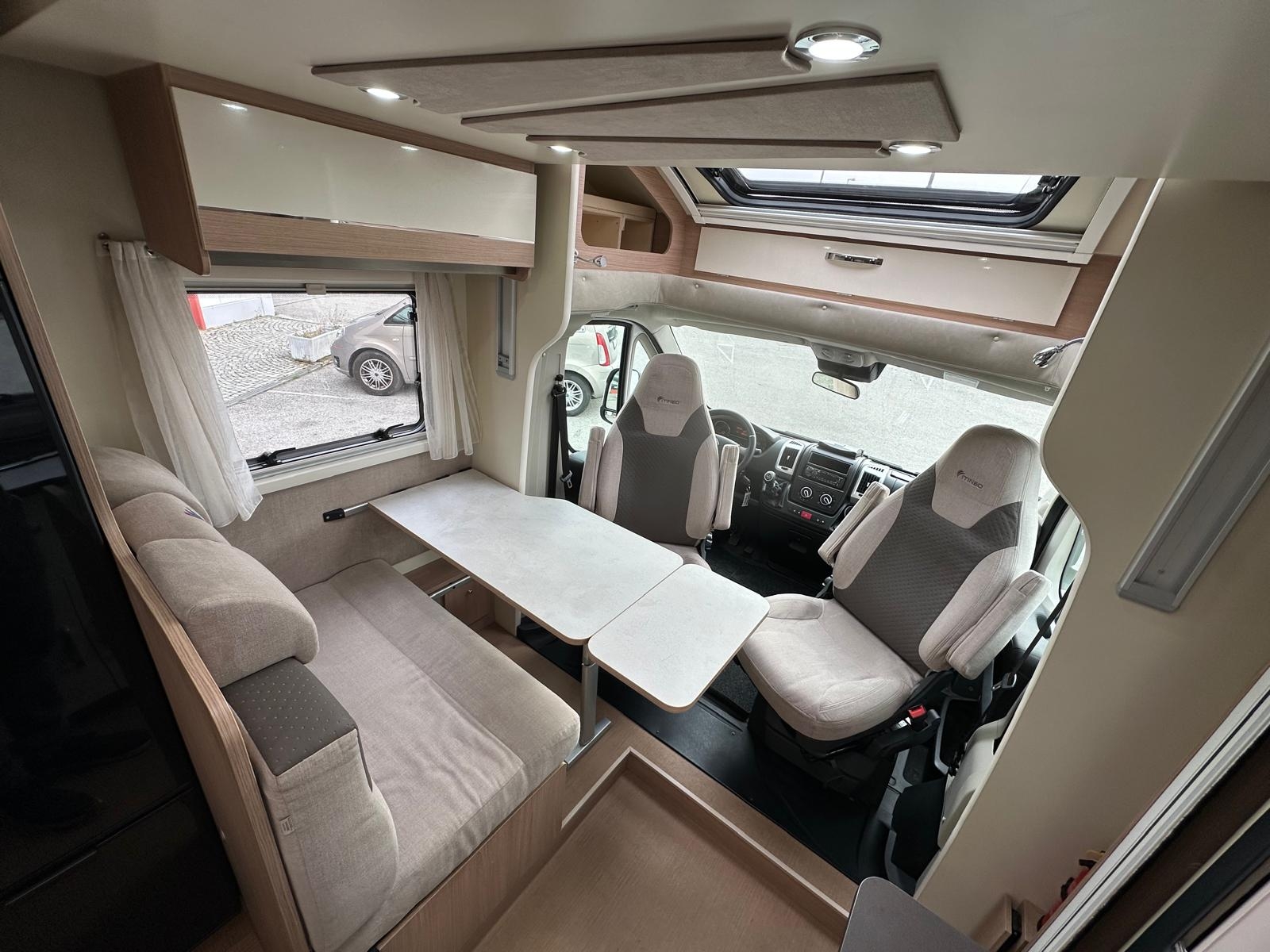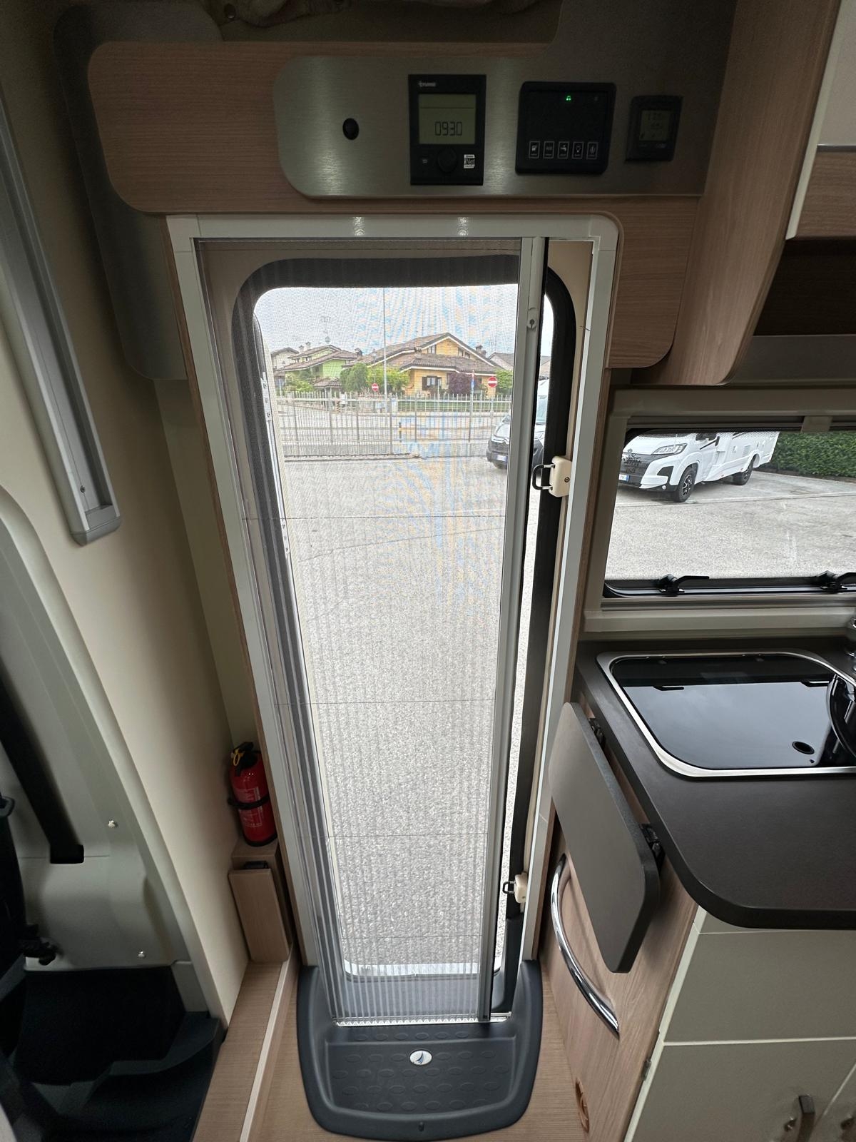 Dotazione: Clima cabina, Cruise control, Retrocamera, Cerchi in lega 16’, Comandi al volante, Chiusura centralizzata, Veranda, Luce esterna, Pannello Fotovoltaico, Portabici, letto basculante singolo elettrico, Zanzariera porta cellula, Sedili girevoli,