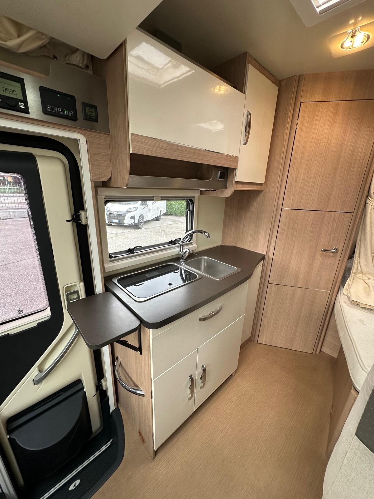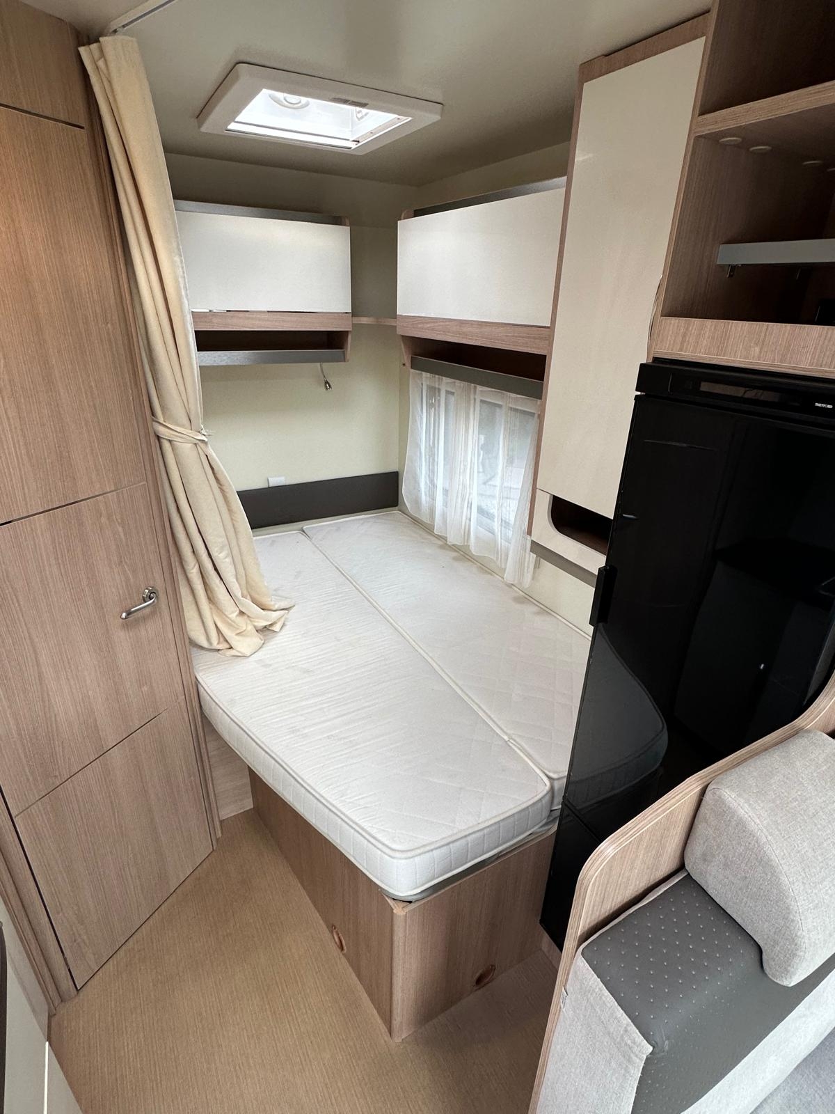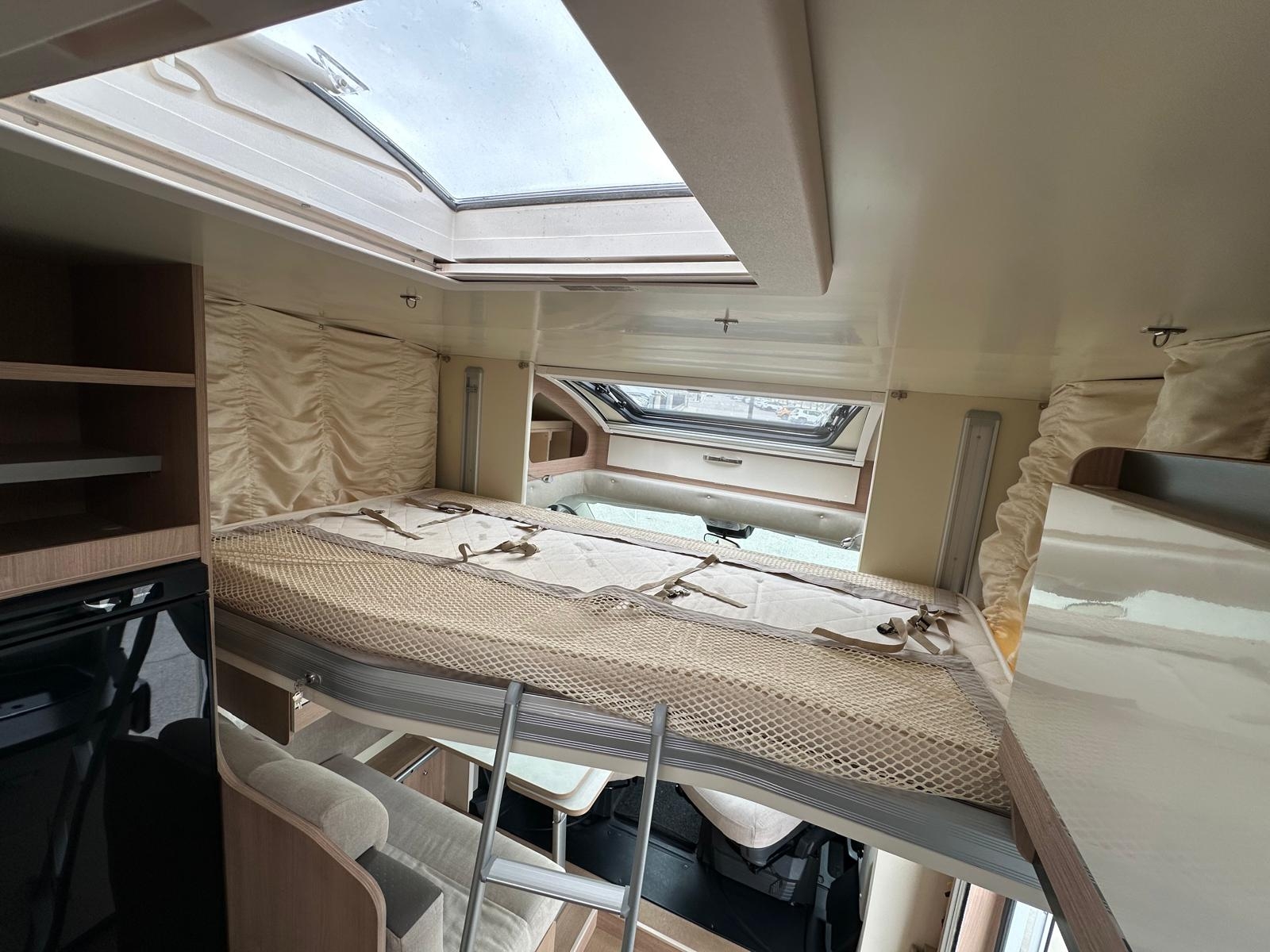Dotazione: Clima cabina, Cruise control, Retrocamera, Cerchi in lega 16’, Comandi al volante, Chiusura centralizzata, Veranda, Luce esterna, Pannello Fotovoltaico, Portabici, letto basculante singolo elettrico, Zanzariera porta cellula, Sedili girevoli,